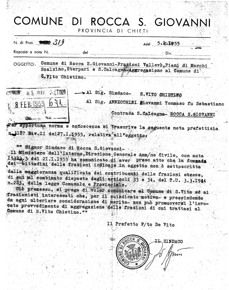 Il tutto è rappresentato nella nota del prefetto (Allegato 1) e nelle segnalazioni dell'on. Remo Gaspari (Allegato 2) al quale si era rivolto il sindaco di San Vito (Allegato 3), che ricevette la risposta e che ringraziò l'on. Gaspari (Allegato 4).